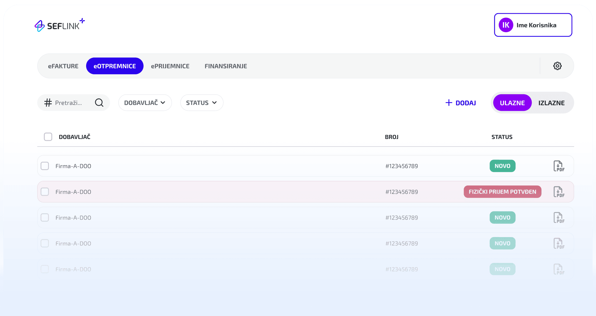 eOtpremnice i ePrijemnice se kreiraju i šalju direktno iz vašeg Sistema
